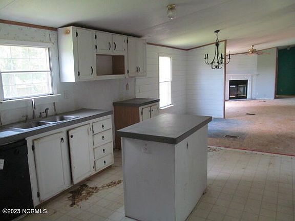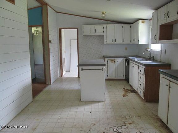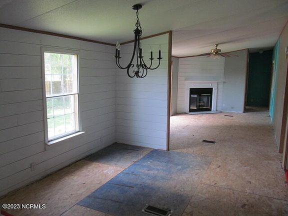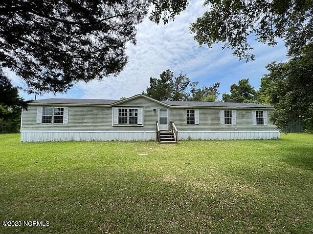 Doublewide situated on .88 acres. Enter into the bright and airy living room. Kitchen opens to dining room and den. Kitchen offers island and ample cabinets. Dining room with shiplap. Den features fireplace with sliding doors leading to deck. Primary bathroom with garden tub, walk in shower and double sinks. Office with built in shelf and bonus room. Separate laundry room. Shed for extra storage. Short drive to enjoy Atlantic Beach, Morehead City's waterfront restaurants, shopping and MCAS Cherry Point. Equal Housing Opportunity. Property owned by US Dept. of HUD [387-374630). FHA IE (insured w/escrow), Subject to Appraisal. 203K eligible. Seller makes no representations or warranties as to property condition. Sold as is. Seller may contribute up to 3% for buyer's closing costs, upon buyer request.