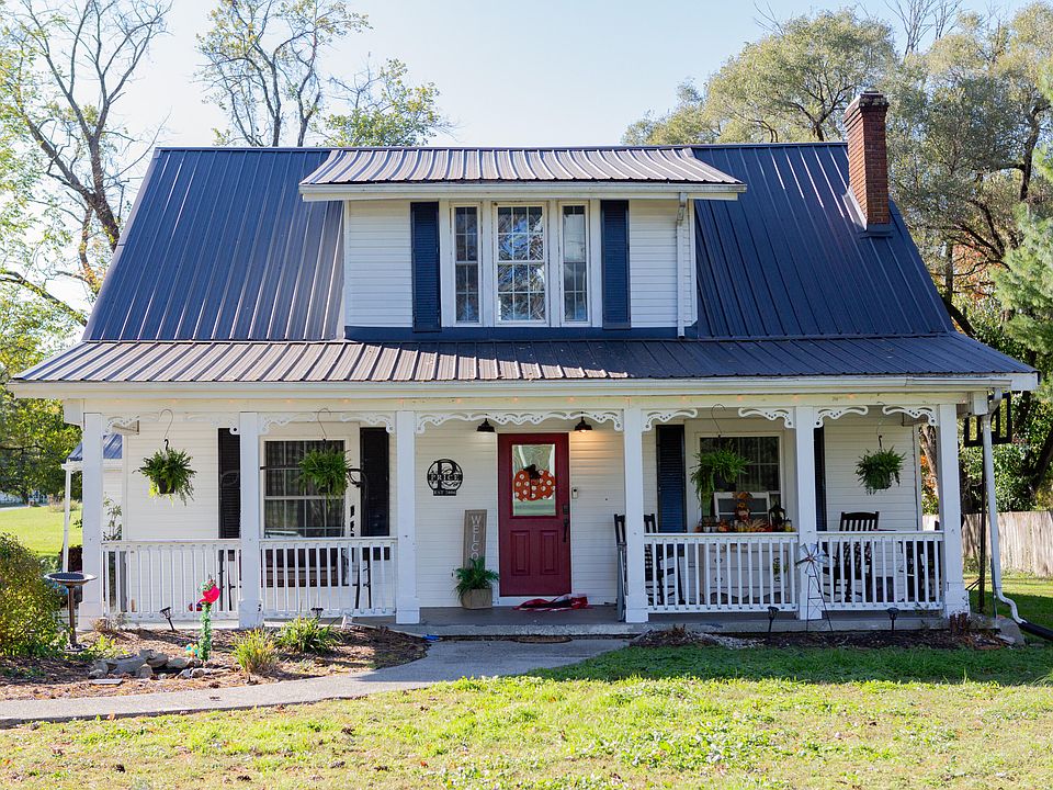 Modern fixturesTouch of rustic styleCozy farmhouse feelPeaceful small-town settingStainless steel appliancesSpacious layoutRed checkered curtains