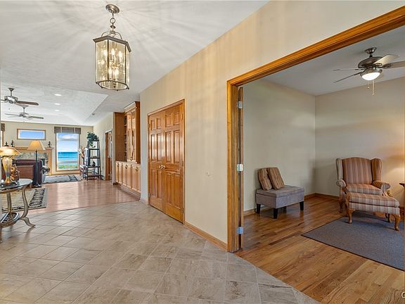 INDULGE IN PURE LAKEFRONT PRESTIGE AND LUXURY! Expertly designed, meticulously curated, and impeccably maintained, this 3 bed/3 full bath, 2,500+ sq ft waterfront ranch is practically perfect in every way. Marvel at the regal roundabout driveway traversing the beautiful grounds and perennial landscaping. A massive foyer greets you with a private study and large dining room on either side. The vast family room is not only spacious but also offers jaw-droppingly stunning views of Oneida Lake as windows flank the beautiful gas fireplace, mantle & hearth. An open concept connects the family room, breakfast nook and the ultra-high end chef’s kitchen with new granite counters and oodles of oak cabinets & drawers with posh lighting. The east side of the house offers 2 generous bedrooms and full bath plus main level laundry, another full bath and the enormous, heated 3-car garage with mechanical room as well. The primary bedroom with breathtaking marine views is also impressive in size and features a spa-like en suite full bath with soaking tub and walk-in closet. Outside, a stately elevated stone hardscape patio spans the entirety of the house stepping down to the exquisite lawn & lakefront with added rock wall at the water’s edge. On the other side of the property, find more than an acre of natural wooded land also to be enjoyed. And with a whole house generator, all new roof, boiler, central air & on-demand hot water plus FULLY FURNISHED with heirloom quality furniture, this home has it ALL!