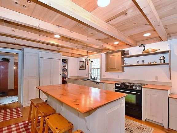 - Kit Dscrp: Pantry, Flooring - Wood, Dining Area, Flooring - Hardwood, Closet/Cabinets - Custom Built, Kitchen Island, Fireplace, Recessed Lighting, Ceiling - Beamed, Country Kitchen