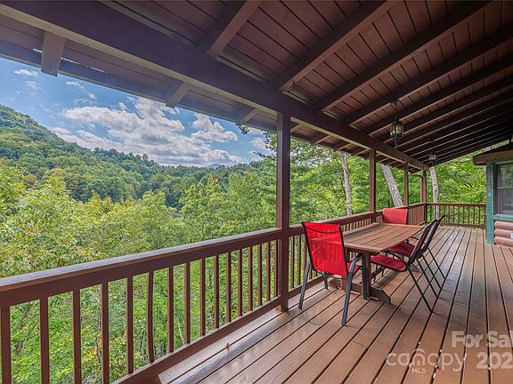 This warm and inviting, solidly built custom log home offers so many options! Conveniently located just minutes from Historic downtown Waynesville and the Waynesville Inn and Golf Club, you will enjoy easy year-round access on wide paved city roads. Beautifully maintained, the home offers numerous updates and improvements. The main level features a seamless flow between the two-story Great Room with vaulted ceilings, and a striking stone fireplace with wood stove insert, a spacious kitchen with solid surface counters and abundant cabinetry, and a welcoming dining area. The primary suite is also on the main level, complete with an updated bath with a walk-in tile shower. Unwind on the expansive back deck and enjoy those end-of-summer days and cool fall evenings, as the mountain transforms with color. Upstairs, you will find a cozy family room, two generously sized bedrooms, a full bath, and a versatile bonus room that can adapt to your needs. The lower-level adds more flexibility with a complete one-bedroom apartment - living room, full kitchen, and full bath, plus its own private deck – ideal for extended family, guests, or caregivers. Add to this an oversized two-car garage with workshop space, city water, city sewer – all city services! Whether as a full-time residence, seasonal retreat, or vacation rental, this log home is the perfect fit.