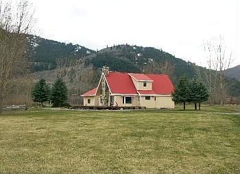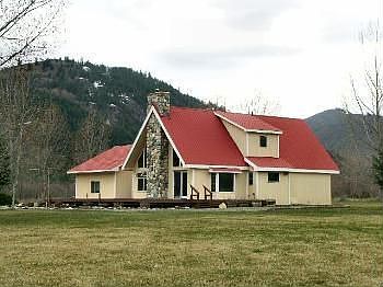 On level plain that juts out above the Twisp River Canyon, this Methow property sits in an idyllic location: bucolic grassy fields on one side, dramatic views of the river, canyon and mountains on the other. A towering river-rock fireplace is the center p