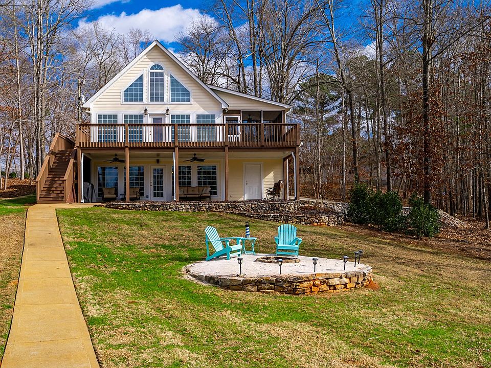 LAKE SINCLAIR MODIFIED A FRAME LOCATED A POINT LOT WITH OVER 400 FT OF WATER FRONTAGE. WRAP AROUND DECK LARGE ENOUGH FOR ALL OF YOUR FAMILY AND FRIENDS TO ENJOY THOSE MAGNIFICENT SUNSET VIEWS. THE HOME HAS BEEN COMPLETELY REMODELED AND IS MOVE IN READY. UPGRADES INCLUDE: CABINETRY, GRANITE COUNTER TOPS, APPLIANCES, TILE BATHS, ENGINEERED HARDWOODS,ETC. TOWERING T&G VAULTED CEILINGS. LOFT EASILY SLEEPS 4-6. MASTER ON MAIN WITH UPDATED BATH. SCREENED LAKESIDE PORCH. OWNER ADDED AN IN-LAW SUITE TO THE TERRACE LEVEL WITH A SECOND FULL KITCHEN, A TILE BATH AND TWO BEDROOMS. CONCRETE DRIVE WAS EXTENDED TO THE TERRACE LEVEL FOR EASY ACCESS TO THE TERRACE SUITE. AMPLE PARKING FOR 2+FAMILIES. CONCRETE WALKWAY TO NEW FIREPIT AND FANTASTIC NEW DOUBLE BOAT SHELTER. THE DOCK IS AMAZING AND THE HOME IS BEING SOLD PARTIALLY FURNISHED WITH THE 2005 BENTLEY PONTOON AND TWO 2017 YAMAHA PWC'S TO CONVEY WITH THE SALE. SHORT TERM RENTAL FRIENDLY NEIGHBORHOOD WITH A COMMUNITY BOAT RAMP, PICNIC PAVILIONS AND COMMON DOCKS.
