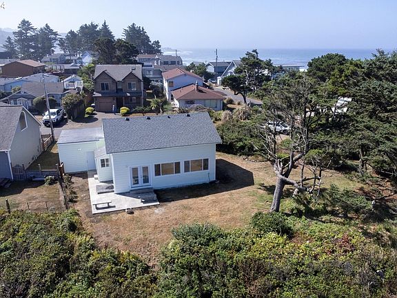 Beautifully updated OCEAN FRONT 3br/3ba home on basalt rock with amazing views from every room! No HOA or Association. Updates include new roof, siding ,many new windows, doors, paint in & out, flooring kitchen, bathrooms & laundry. Quartz counters thru-out, all tile showers. Who needs a TV with this entertaining view of whale watching & crashing waves. New stainless steel appliances in kitchen w/new cabinetry and eating bar island. Main floor bedroom & separate bath w/laundry next door includes high capacity, space saving washer/dryer combo unit. Large pantry area around the corner from the kitchen. The upstairs features 2 on-suite bedrooms, both w/luxurious tiled showers & ocean views. Check out the 3-D Virtual Walk-Through!