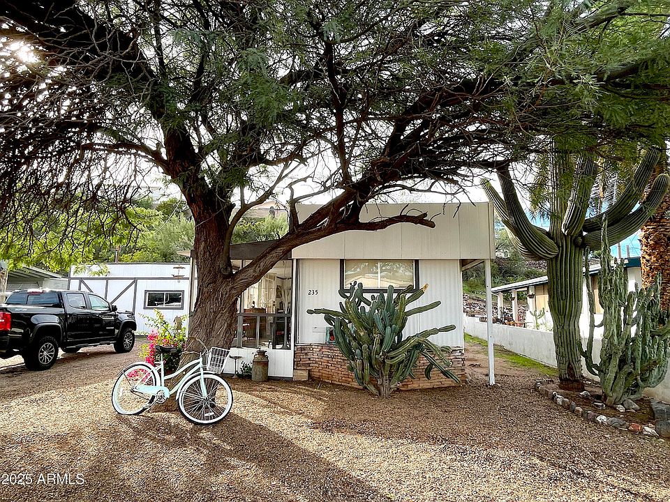 If you are looking for a home with a nice sized garage, this is the place. This garage is bigger than it looks, with room to work and park your ATV, small Jeep, and or golf cart. The 2 bedroom home has several updates from the kitchen to bathrooms and flooring. Enjoy your privacy with a split floor plan. The screened in porch room is a perfect spot for meals. The back yard has a fenced area between the porch and garage for your pets. The spacious driveway leaves plenty of room to park your RV and other vehicles. Remember this community has no HOA.