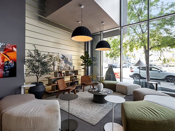 Private corner balconyFloor-to-ceiling windowsIn-unit laundryAmple storageOpen kitchenSolar shadesGranite counters
