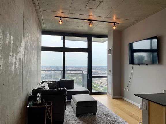 Price change. Largest 1bed/1bath floor plan in award winning building at a very competitive price! Sleek & modern south-facing loft-style condo with 10 ft ceilings and floor to ceiling windows drenched in sunlight. Spacious private balcony with unobstructed stunning city views & The Chicago River. Open floor plan with exposed concrete, large foyer at entry and long hall leading to kitchen and living room all with hardwood flooring. Modern kitchen boasts stainless steel appliances and granite countertops. In-unit washer & dryer, ample closets and spacious bedroom and bath. Unit was freshly repainted in 2020. Low monthly assessment includes heat, A/C, water, gas, 24-hr doorman. On-site management in building with grocery store, dry-cleaner, bike room & state of the art package receiving room. Pet-friendly & investor-friendly building. Excellent location: Steps from Willis Tower, restaurants, dog park, city parks, CTA lines, Union & Ogilvie stations, Michigan Avenue. Unit comes with parking spot #548 included in price. Building is FHA approved. Do not miss! Also available for rent at $2,100.