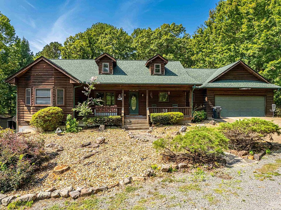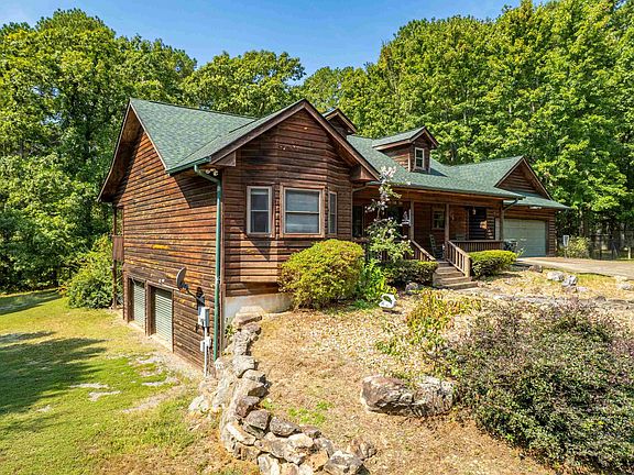 Tranquility awaits in this classic log cabin style 3 bed/2 bath home in Fountain Lake. The open kitchen/living room allows for entertaining that can spill out on to the covered porches in the front and back yard! Gorgeous wood built-ins and an antique fireplace surround give added character to this home. Nestled on 2 acres with a creek at the back of the property and a wet weather creek in the front yard, this property is lush with plants that bloom throughout the year. A 2 car garage allows easy parking access to the mudroom, kitchen, and primary suite. Solar panels provide minimal energy bills most months. And, an additional basement space has 2 garage doors to allow easy access to the safe room and workshop space. NEW ROOF was installed last year with the solar panels. Just minutes from the new bypass and the Mountain Valley Spring Water bottling facility!!!