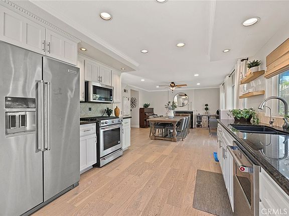 THIS HOME IS A MUST SEE! This beautiful home is in the highly sought-after community of Country Hills! It features a bright and open floorplan with 4 bedrooms, 2.5 bathrooms with 2,200 square feet of spacious living space AND is walking distance to County Hills Elementary. You are welcomed at the entry into the large living room which features recessed lighting, cozy fireplace with custom mantle and also has room for TV. The updated kitchen features KitchenAid stainless steel appliances, plenty of cabinetry for storage, granite countertops, eat in dining and is open to the family room which includes charming fireplace and has lovely views of the beautiful backyard. Upstairs features a LARGE Owners Suite which features a walk-in closet, recessed lighting, updated vanity and beautiful glass enclosed shower. Secondary bedrooms are generously sized and have a beautiful full bathroom down the hall. An added feature upstairs is the Craft/Storage room that is in between the Master Bedroom and secondary bedroom. Plenty of room for storage or to make a small craft room or small office. Additional features of the home include engineered wood flooring throughout, beautiful iron staircase railing, crown molding, whole house fan, re-piped plumbing, dual pane windows, solar panels and large 2 car garage. This home is located in the Award-Winning Brea Olinda Unified School District, and is minutes away from the Brea Mall, Birch Hills Golf Course, entertainment, restaurants, shopping and has easy freeway access. This home is one you won’t want to miss!