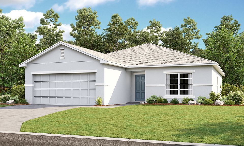 Ambrosia is a cozy single-story plan with the option to add a fourth bedroom. Optimized to best utilize square footage, the front door leads through the foyer and directly into the spacious dining room and gathering room. From here, a seamless transition is made into the kitchen, where the chef at your home will enjoy a food prep island, walk-in corner pantry and plenty of natural light with a sliding glass door leading out to a back patio. An owner's entry through the laundry room is great for dropping off wet or dirty clothes from sports and outdoor activities. A spacious owner's suite sits tucked away opposite the secondary bedrooms for additional privacy. The owner's bath includes dual sinks & vanities, large shower, impressive walk-in closet and linen closet. This home is situated on a sought after waterfront homesite! Options added at 235 Zircon Road include: appliance package and 2" blinds. REPRESENTATIVE PHOTOS ADDED.