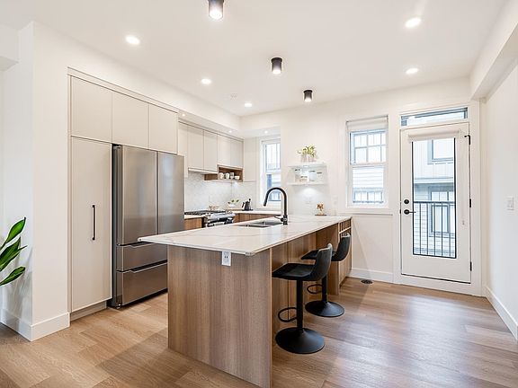 Bright and spacious Townhome complete with a wide floorplan, 4 beds and 3.5 baths. This home feels brand new and showcases stunning mountain views with no neighbours blocking the partial mountain views from your living room window. Thoughtful features designed for comfortable living include forced air with A/C, level 2 EV charging, vinyl plank flooring, a beautiful kitchen with breakfast bar, quality stainless steel appliances and gas stove, plus a double side-by-side garage. Enjoy incredible amenities such as a two-storey clubhouse and fitness building. All of this just steps to Edgewood Elementary, Grandview Secondary, the aquatic centre, Morgan Crossing and the beautiful Edgewood Park. An incredible location nestled in a peaceful, tree-lined community with unbeatable convenience.