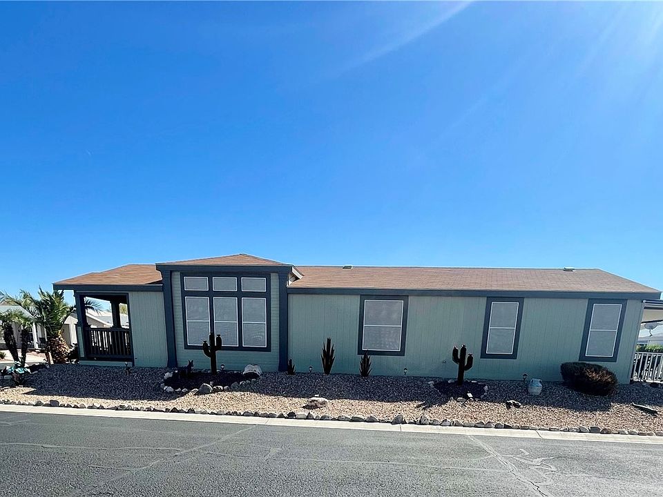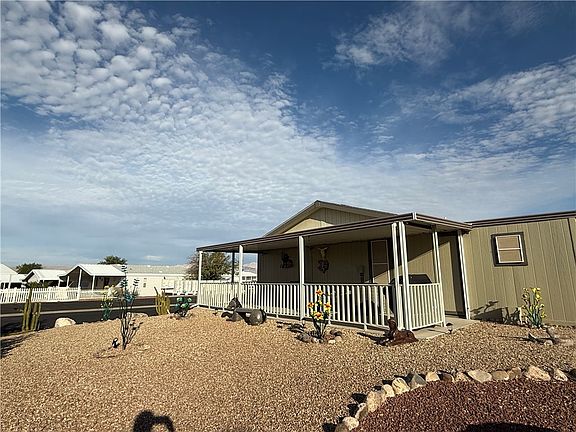 Lovely 2014 2 Bedroom plus office/den. This newer home has all the modern features. The kitchen is a chef's delight with ample counter and cabinet space. Breakfast bar to enjoy casual dining and guest entertainment. Open to the dining area and large living room for easy entertaining. The large primary bedroom and bathroom offer walk in closet, walk in shower and dual sinks. The guest bedroom is conveniently located across from the guest bath for ease of access. Enjoy the convenience of the in house laundry. Front and back covered patios offer a spot to relax and enjoy the beautiful upgraded landscaping. A great place to enjoy the evening sunsets or vistits with friends and neighbors. The carport has an enclosed portion for vehicle protection and a shed for storage or workshop. Don't miss this one with the newer features. Enjoy the social life in this 55+ Gated Active Community with 2 pool and spa areas, a clubhouse with a calendar full of activities all month long. For entertainment it is a short drive to Laughlin for gaming and dining .entertainment. Shopping and medical a short distance.