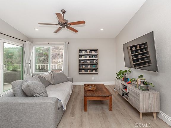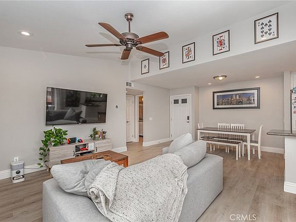 As you walk through the door, You will notice an open concept, turn key living space featuring High Vaulted ceilings, new laminate flooring, updated dual pane windows and a private balcony. The entire home is newly painted and lit throughout with recessed lighting. Enjoy a modernized kitchen that features granite countertops, subway tile backsplash and an updated sink. The spacious patio balcony has a storage closet and plenty of room for grilling and morning sunsets. Moving into the hallway, you will find a laundry closet located in inside with a stacked washer and dryer for covinience. The bedroom is spacious and bright with natural sunlight and is adorned with a walk-in closet that also features unique attic space for added storage room! The bathroom as been recently updated that offers a walk in shower, granite counter tops and plenty of cabinet storage. Parking is a breeze: 1 private nearby carport and plenty of guest parking. The HOA pays for the unit's water and trash. Sage Canyon Community is exceptionally well-maintained, offering a host of amenities such as a sparkling pool, spa, BBQ area, gym, volleyball court and clubhouse. Nestled in a desired, commuter friendly location with quick access to 91 Freeways, Toll Roads, Trains, Parks, Hikes and trails, Shopping and Schools, don't miss your chance to make this Corona treasure your new home! VA Approved, Refrigerator, washer and dryer included.