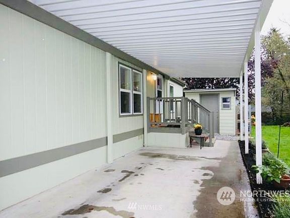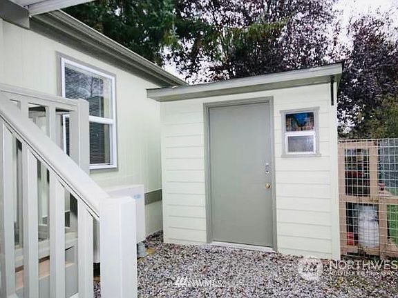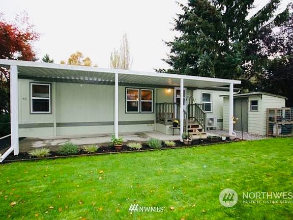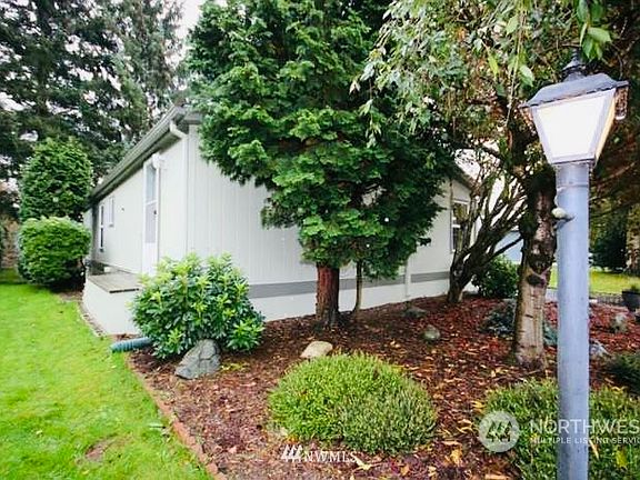 Affordability in Ferndale. This charming 3 bed/2bath doublewide mobile home is nestled in a quiet cul-de-sac providing a peaceful and private setting. The main living area features an open floor plan with a living room, dining room and fully equipped kitchen. Three good size bedrooms with the primary and ensuite occupying its own wing of the house allows for ample privacy. Enjoy the well-maintained yard and garden space and watch the gorgeous Japanese maple tree and cherry blossom tree come to life in the spring.