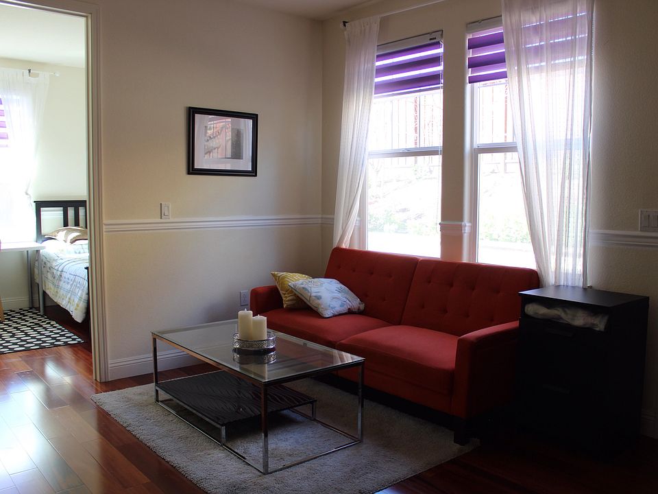 This charming in law suite has one bedroom, one bathroom and living room with kitchen. fully furnished with bed, sofa, desk, tea table, TV, refrigerator. 5 minutes to TARGET, OUTLET. 10 minutes to BART, COSTCO, SAFEWAY, RANCH 99 $1950 per month with half year lease period. one month security deposit.