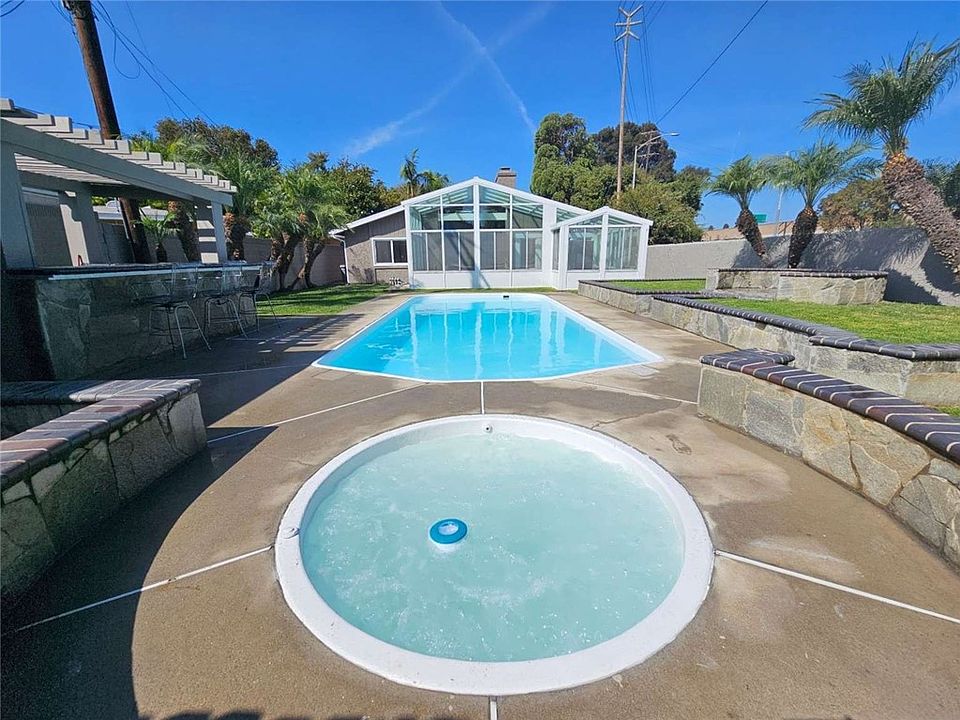 Discover the exceptional charm of this beautifully remodeled home in the desirable Los Altos neighborhood, offering a generous 2,653 sq. ft. of living space - significantly larger than the typical 1,500 sq. ft. homes in the area. Built in 1979, this residence boasts modern upgrades, including copper plumbing, a feature often missing in many of the older homes from the 1950s. 3 bedrooms, 3 baths, quarter acre lot. Ease of access to major shopping centers and the freeway. Walking distance to Blue Ribbon Prisk Elementary School. 1.6 miles from CSULB. This remarkable property includes a unique glass house, perfect for hosting dinner parties or enjoying a cozy afternoon while watching the rain. The chef’s kitchen is a highlight, showcasing stunning waterfall stone counters that blend elegance with functionality. Experience the ultimate in relaxation and entertainment with the addition of an extra pool room. Retreat to the massive master bedroom, which features a luxurious shower complete with a rainfall shower head, creating a spa-like experience right at home. Recent renovations include a new roof, flooring, refinished pool and spa, new garage door, and fresh paint throughout, ensuring that this home is move-in ready. To help you envision your dream space, digital staging photos are provided, showcasing the home's potential. Don’t miss the opportunity to make this stunning property your own. You deserve to make this house your home!