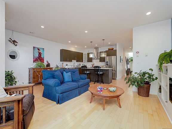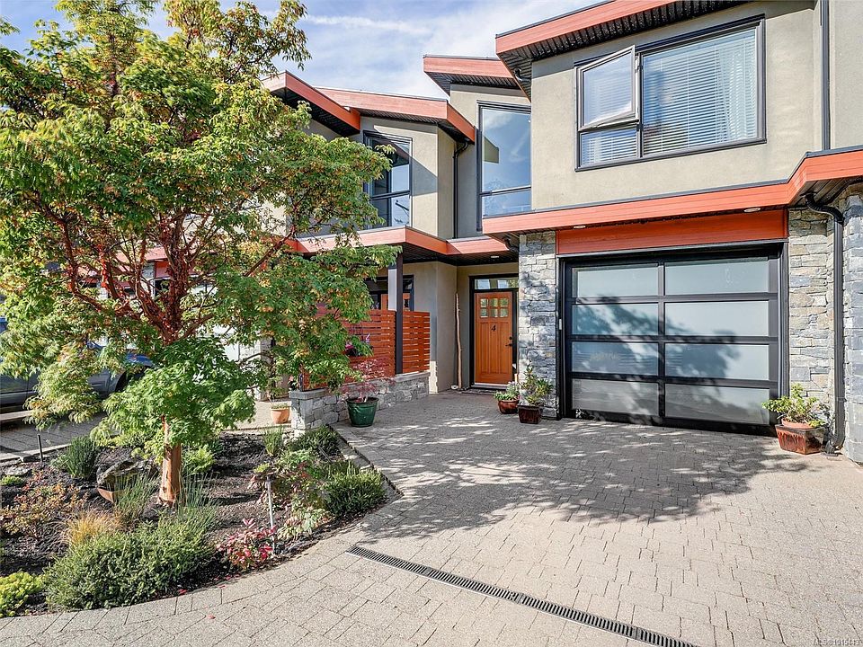 This Contemporary Private Townhome is in one of the most sought after boutique complexes in Sidney By the Sea. From the wood and stone exterior to the exceptional interior finishes, including oversize windows, maple floors and vaulted ceilings, this home makes for a very elegant lifestyle. The kitchen includes top end appliances with wood cabinets and quartz countertops flowing to an open concept living room and out to a very private garden patio. the Primary Suite features a soaker tub, walk in closet and heated tiles. Sidney shopping and the Waterfront are an easy level walk. Open Saturday Oct 4th 1-3 pm.