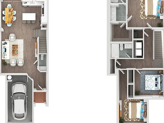 Smart home technologyCustom cabinetryVaulted ceilingsChef-inspired kitchenOne to two-car garagesHardwood-style flooringSamsung stainless-steel appliances