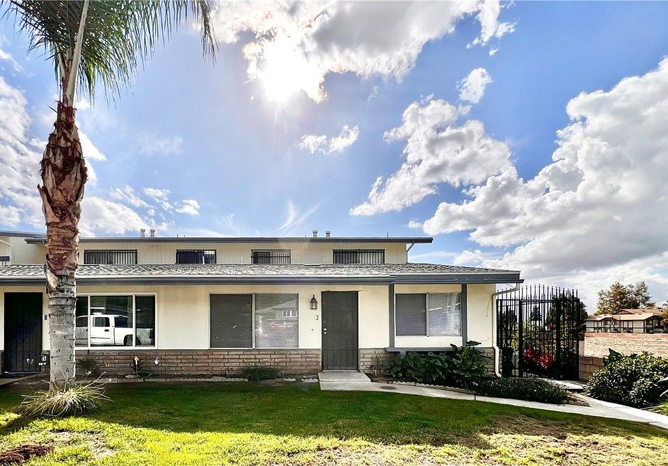 A great opportunity for this Charming 1-bedroom, 1-bath condominium. This home features bright, modern interiors recent renovations boasting reclaimed-look with laminate floors, quartz countertops, firdge included and recessed lighting. Attached one-car garage with additional storage, washer-dryer included, adds convenience. Community features a sparkling swimming pool and lush green lawns, ideal for relaxing or entertaining. Sewer, trash, bbq and grounds maintenance are included with HOA. Location offers a quiet residential feel and city access. Near Highway 210, major shopping, dining, and work hubs throughout the Inland Empire. Within reach of several schools: nearby options include Aquinas High School, among others. Welcome home