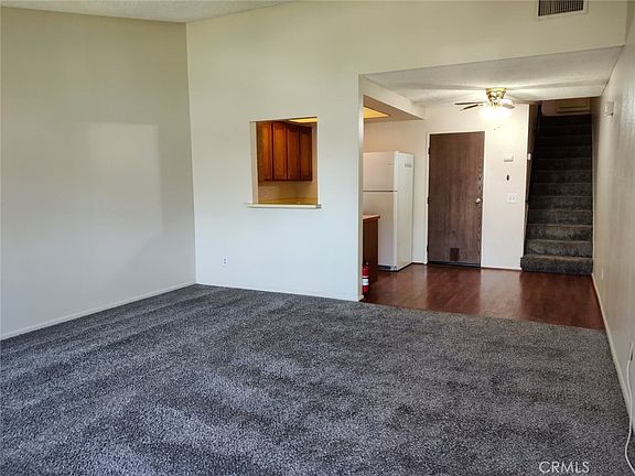 2 bedroom 1 bath, 2 story condo with an attached 1 car garage. Community Pool. Garage has plenty of storage with laundry hookups, insulated door and automatic opener. Living room & kitchen downstairs with upstairs bedrooms & baths. Close to shopping and freeway access and short distance to schools. Carpet in living room and bedrooms with laminate flooring in the Kitchen. Refrigerator included.