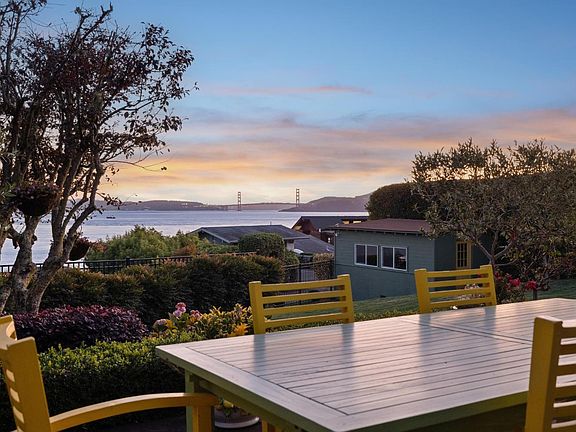 Imagine yourself waking up to stunning San Francisco Bay views - this enchanting 1939 home sits perfectly on Paradise Drive, on one of the three largest flat lots in Lyford Cove, offering a breathtaking panorama. Boasting shimmering vistas from the East Bay through Racoon Strait to the iconic Golden Gate Bridge, this delightful home is a dream for those seeking something extraordinary and magical. Step inside to discover character-filled spaces that echo the unique charm of Tiburon. The two-bedroom, two-bathroom home spans a rare street-to-street lot, offering privacy, charisma, and cozy outdoor areas perfect for intimate gatherings. The patio, lawn and stunning gardens become your private retreat for morning coffee or sunset wine. Beyond the main house you will find ample storage: a one-car garage, a detached shed and a convenient paved parking pad for three more cars, making entertaining easy. Just a stone's throw from downtown Tiburon's charming storefronts, dining spots, two prominent yacht clubs and the Golden gate Ferry, you'll never be far from the town's vibrant energy. For those who value charm, privacy, and an unforgettable view, this is more than a home; it's a daily adventure, perfectly situated on the edge of bay magic.