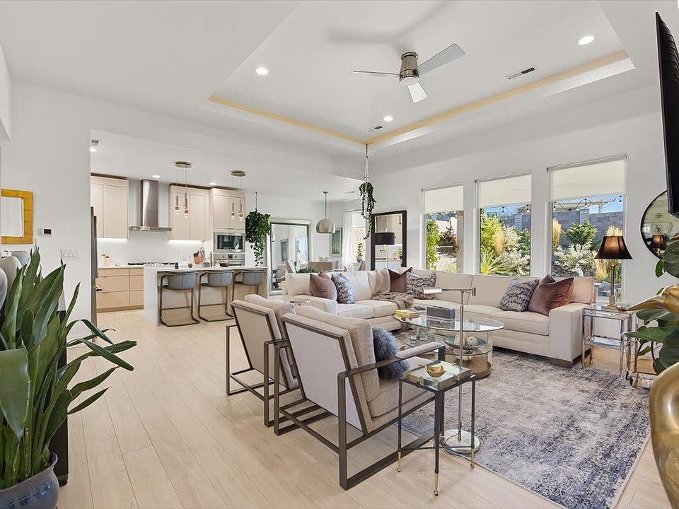 Covered patioElectric fireplaceWarm touchesPrivate backyardGorgeous kitchenNatural lightScenic area