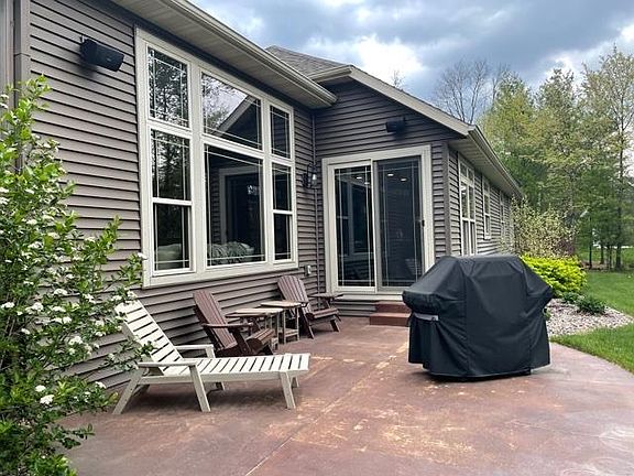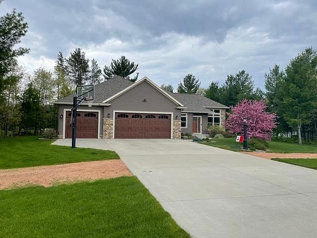 Executive Style Home located in highly desirable Auburn Ridge on the River Subdivision. This Development offers a unique opportunity for homeowners to have shared access to boat docks on the Biron Flowage section of the Wisconsin River while still enjoying the convenience of Village of Plover Living. Auburn Ridge on the River includes over 3000 feet of frontage on the River and over 50 acres of "conservancy area" that is owned collectively by the homeowners. It features a multiuse trail system for walking,hiking,biking throughout the development and provides golf cart trails from each home to dock area.The exterior of the home offers low maintenance siding, Cultured stone, oversized windows, custom landscaping with sprinklers, Patio Area all on an oversized wooded lot. Open Floor Plan features Kitchen with upscale Cabinetry, Granite Island, Large Pantry, and all the appliances are included. Great room with a high lighted trey ceiling, gas fireplace, custom Hunter Douglas Blinds (all window treatments are included). Dining area opening to Patio Area with large wooded backyard. Main Floor Laundry Room with Included newer Front Loader Washing Machine/Dryer and a Laundry Sink. Master Suite with Trey Ceiling, Walk-In Closet, Custom Tiled Shower, Dual Sinks, and jetted Tub. 2 other main floor Bedrooms (one currently used as an office). 2nd Main Floor Bath offers Shower and Cambria Countertops. Backhall with cubbie locker storage and bench. 3 Car Garage. Gorilla Basketball Hoop is included. Lower level Expansion is partially finished with 9 ft. Ceiling, 3 large E-gress Windows, Drywall and rough-in plumbing for a 3/4 bath and is ready to be finished! This is a Energy Efficient Built Home with Insulated Concrete Form Basement Walls which provide a warm and dry feel. Subdivision has Protective Covenants, Matching Light Posts and Mailboxes. Call today for your private Showing.