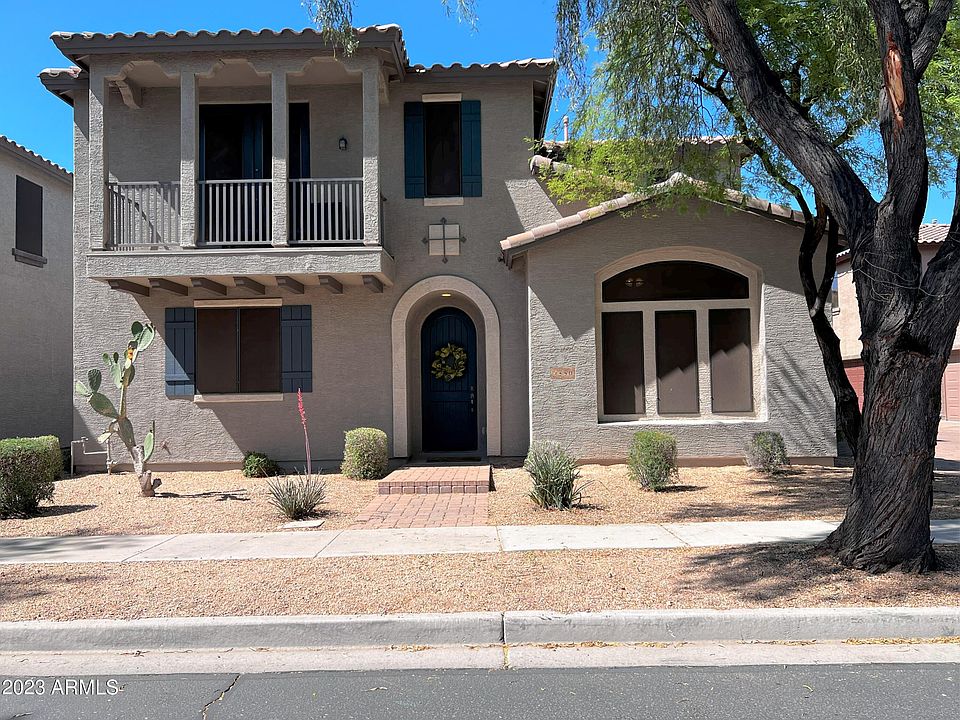 STUNNING! Fall in love with this 3 bedroom +den, 2.5 bath beauty. Spacious living room with wood-look tile flooring, high ceilings & plantation shutters. HUGE gourmet kitchen with slab granite counters, tons of cabinets, pantry, center island, gas range, st/st appliances. ROOMY MASTER SUITE upstairs w private balcony, wk-in closet, dual sinks & sep tub/shower. Spacious secondary bedrooms with JACK & JILL shared bath. Den area features built-in desk & storage. High ceilings, ceiling fans, upgraded lighting & plantation shutters t/o. Carpet, paint & living room tile new 2018. Great low-maint backyard. Attached 2-C garage w built-in cabinets, water softener. GATED community w pools, community center, parks, splash pad. Near Norterra, TSMC chip plant, freeways, hiking & NEW AMENITIES COMING!
