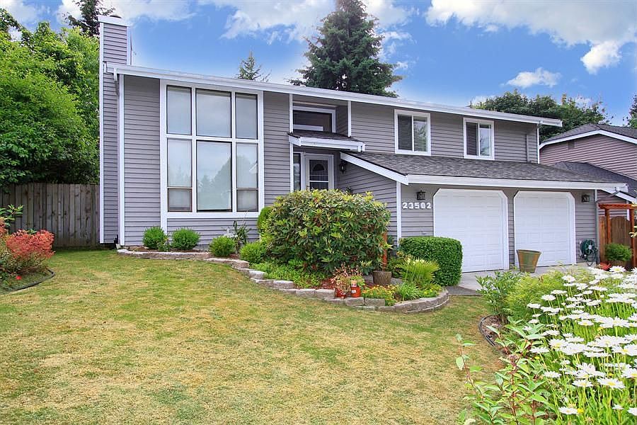 Private backyard with extra large terrace deck with western exposure. Hardwood floor in living room and dining areas, tiled kitchen floor and counters. Cathedral ceilings throughout the living room, kitchen and dining. Double door master bedroom with walk in closet. Great location close to I-405, shopping and Northshore School District.