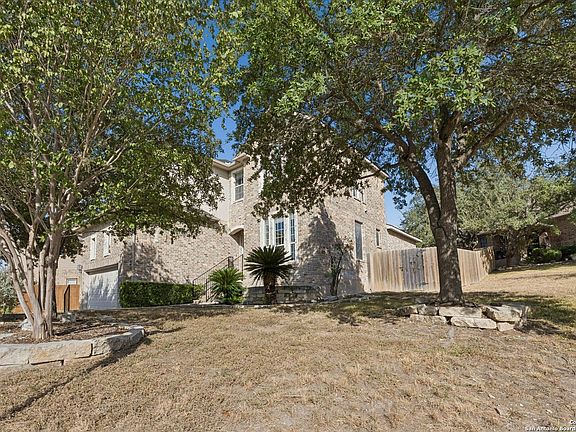 Welcome to 23503 Enchanted View. Located in the prestigious gated Heights at Stone Oak community, this stunning 4-bedroom, 3-bath, 3,187 sq ft two-story home sits on a spacious 0.29 acre corner lot. Enjoy resort-style living with a sparkling in-ground pool, large backyard, and a covered patio with gazebo, Perfect for entertaining. Inside, the home features a thoughtfully designed floorplan with travertine tile in the main areas, and wood flooring in key bedrooms and the office. The kitchen is a chef's dream with a gas cooktop, designer chef's vent hood, walk-in pantry, breakfast bar, and plenty of counter and cabinet space. Adjacent to the kitchen is a breakfast nook that flows seamlessly into the living room where a cozy fireplace and large windows create a bright and welcoming atmosphere. The private primary suite, located upstairs, includes dual vanities, a garden tub, walk-in tiled shower, and large walk-in closet. A secondary bedroom is located downstairs, with two more upstairs, plus a versatile finished bonus room above the garage making this space ideal as a game room or media room. Additional highlights include a dedicated home office with French doors, formal dining room, 2-car garage, and water softener. Don't miss your opportunity to own this exceptional home in one of San Antonio's most desirable neighborhoods.