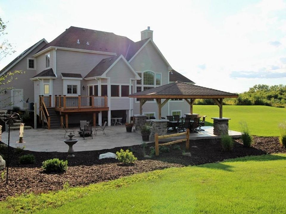 Welcome to your quality-built dream home on 15 acres of privacy! 9ft and cathedral ceilings throughout. Main floor offers master ensuite, office with birch flrs, laundry, floor to ceiling fireplace, kitchen with granite, maple cabs, SS appliances and powder. Upper offers 2 beds, bath, loft office and bonus room! Entertain in the 3-season room or on the large patio with covered structure overlooking landscaped yard. Trailed wooded area leads to 3 gardens. 6500 sq ft pole barn has 50x50 heated area and bath, 60x50 cold storage. LL has full-size windows for additional beds, plumbed for 3rd bath.