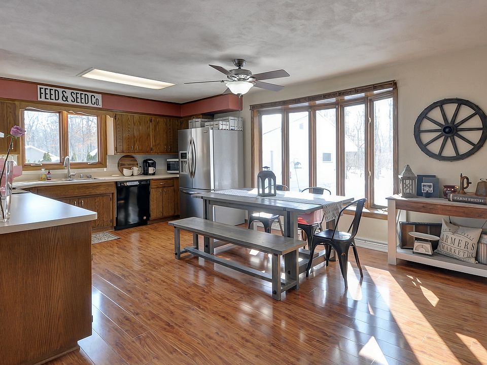 Country living at its finest, walking distance to Eagle Lake and Eagle Lake Park, this stunning brick ranch nestled in a wooded lot and makes you feel at home the minute you pull in the driveway. This home features two way fireplace from living room to the master bedroom. Finished basement with a full bath, natural fireplace, and wet bar. Ample storage in the 2.5 car detached garage with an added bonus of a stand-alone wood shop or she-shed for personal work space.