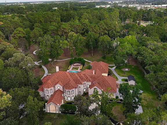 Sprawling estate located on 4.5 gated & fenced acres in Spring! Circular drive w/porte-cochere, 3 car garage, dual entry doors, impressive 2 story foyer w/barrel ceiling, fresh interior paint, new carpet, all new LED lighting, extensive marble & hardwood floors, plantation shutters & more! See list. Enormous study w/new quartz counters, built-in desk & shelving; formal dining room w/triple crown moulding, built-in buffet w/2 warming drawers & a Schonbeck chandelier; dramatic formal living w/gas fireplace, floor to ceiling windows overlooking the private acreage & pool & adjacent wet bar. Open & airy kitchen w/2 walk-in pantries, 2 new sinks, new quartz counters, & refaced cabinets w/new hardware. The kitchen opens to the light filled breakfast room & den. 2nd study (or flex space) + Gym & craft room; palatial primary bedroom down; primary bath w/2 huge walk-in closets, 2 bidets, gorgeous shower & freestanding tub; 4 bedrooms w/en-suite baths, game room w/balcony & media up; casita too!