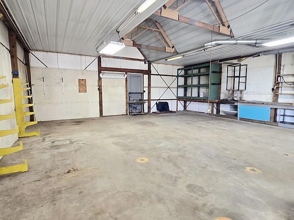 Situated on the outskirts of town, this parcel of land presents numerous opportunities for development. The shop encompasses an area of 54 by 30 feet and is equipped with both heating and an air compressor. Additionally, the office space features a wall-mounted air conditioning unit. There is also a well-maintained storage shed on the property.