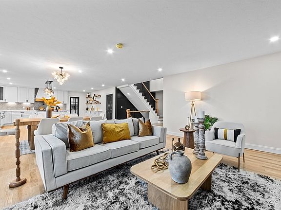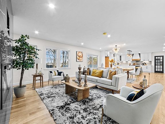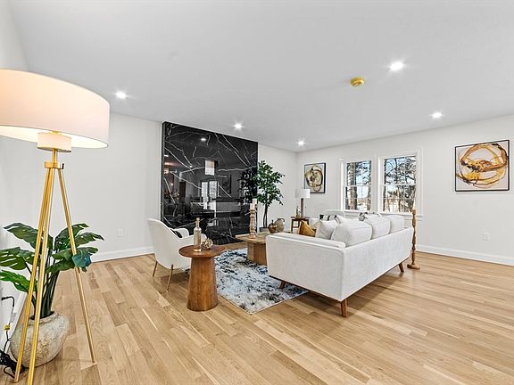 Nestled at the crossroads of Stoughton, Canton, and Sharon, this stunning home offers over 4,500 square feet of living space, minutes from shopping, trails, and major highways. The awe-inspiring 18-foot entryway welcomes you with natural light and a grand floor-to-ceiling tiled fireplace in the living room. The open-concept design flows seamlessly into a chef’s dream kitchen with a waterfall island, custom white oak range, and a fully equipped butler’s pantry with a grocery chute. White oak hardwood flooring enhances the warmth and elegance throughout. The spacious layout includes 4 generous bedrooms and 2 in-home offices with French doors. The elegant staircase leads to the owner’s suite, which features a luxurious en suite bath with a freestanding soaker tub, custom oak double vanity, and a massive walk-in closet with an accent fireplace. The basement offers 1,200 sq ft of finished space with a fireplace and wet bar. The 24-foot deck overlooks a private backyard for entertaining.
