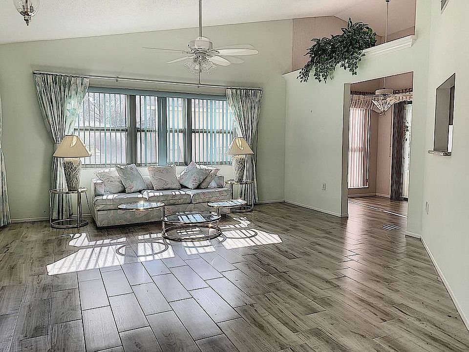 Welcome to your next home and adventure at Timber Pines. A beautiful 55+ community with no rental or pet restrictions that offers golf on three different courses and a par 3, tennis on eight courts, and swimming in two geo-thermally heated community pools, you'll also find bocce and shuffleboard on some of the finest courts around. We also have pickleball, horseshoes, jogging, bicycling, water aerobics, exercise classes, and nature walking on our many paths. There are various clubs and classes; try your hand at pottery, painting, crafts, quilting, mah jongg, bridge, pinochle or euchre. Your next move is this 2 bedroom home (large master bedroom 20x11), 2 bathrooms, 2 car garage home. Nothing to do except move in. Tile plank flooring, A/C and softener replaced in 2020, peaceful enclosed lanai with A/C and heat for year round comfort, appliances 4 years young, window and door replacement 10/2014, seamless gutters and the sprinklers are on a well to save money on your water bill. Bonus Room with A/C and Heat. Don't miss the opportunity to live in this private sought after community of Timber Pines, established in 1982 dedicated to providing the premier "Country Club Living for Active Adults". The community is a fully developed and vibrant community of 3,452 homes and villas. The community assets and amenities are fully owned by the residents.