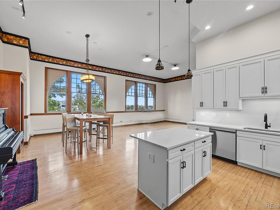 Newfound elegance has been embedded in the history of 2351 Federal Boulevard, a remarkable residence where grand stature intertwines with fresh details and function. Nestled in what was once The Boulevard School, this unique penthouse offers 1,800 sq ft of light-filled living space, adorned with antique glass transoms and original interior touches that nod to its storied past. An exceptional piece of history that's included is the 1910 Hardman Peck & Co New York Cabinet Grand, a rare feature of the brand's long history and commitment to elegant design. Additional "old school" touches include the "cloak closet" that has been transformed into a long hallway including a full-wall window, built-ins and an adjacent raised loft for a cozy reading space, open storage or a private nook for R&R.