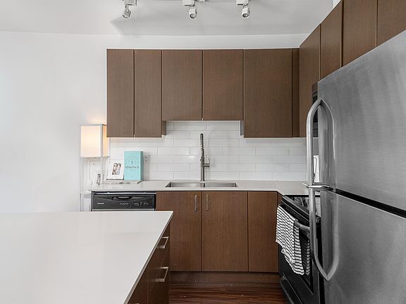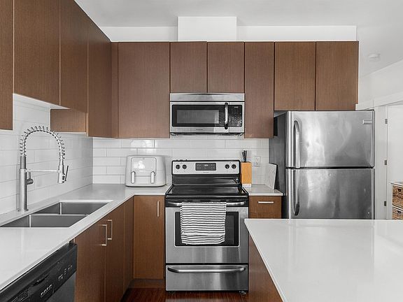 Modern finishesStylish kitchenQuartz countertopsLarge islandPrivate patioSeparate entrance