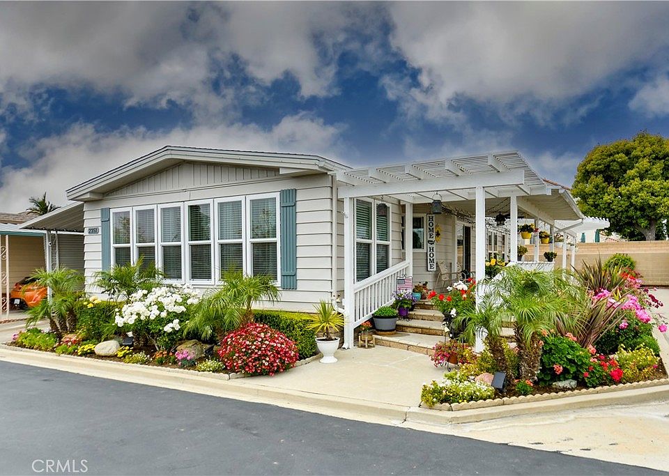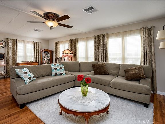 For those discerning buyers, this "pride of ownership" home is for you! It is absolutely gorgeous inside and out! Not only is this mobile tastefully updated, it is elegantly decorated. Did I mention, it has a great location too. Enjoy an unobstructed view of the spectacular morning sunrise. The kitchen is fully remodeled with new marble counters, new appliances and shaker cabinets. The appliances include a 5 burner Bosch gas cooktop, built in microwave, oven and dishwasher. There are two pantries and gorgeous lighting with a built in fan. The mobile also features laminate wood flooring, new dual pane windows throughout, ceiling fans, central air and heat. New roof was installed a few months ago. There is an inside laundry room has a custom door & screen door with access to the back tandem carport. The guest bath has marble counters, new faucets, remodeled walk in shower and new vanity. There is a beautiful white barn door that separates guest bedroom and guest bath. The kitchen has open floor plan that opens to large family room. The spacious master bedroom has mirrored closets and the master bath has been fully upgraded with many handy built in items, such as a built in hamper. Outside is your own private oasis. The gorgeous front porch is huge and surrounded by a beautiful array of plants and colorful flowers. The back storage unit has full electrical access inside and makes an excellent workplace. Just way too much to mention. This immaculate home is a must see! The community features a lake for fishing, beautifully, well maintained grounds, a community pool, clubhouse, gym, billiard/card room and jacuzzi. A fun community filled with friendly seniors. Resort living every day of the year. Purchaser must be 55yrs+ and pass park approval.
