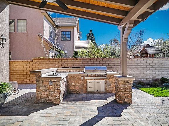 Sophisticated executive home in the great neighborhood of Happy Valley, Newhall. Having the detailed craftsmanship by home builder Norris Whitmore, this home has all the impeccable amenities for the discriminating buyer. Since it was purchased in 2015, the new owners have added SOLAR (paid for) and a marvelous outdoor living area with kitchen, fireplace and large screen T.V. Electric bills went from $385. per month to $10.00. Sun washed with light from the Andersen windows, the great room with soaring ceilings with travertine flooring, oversized fireplace and views to the lush landscaping. The chef's kitchen has cherry cabinetry, all upgraded appliances, butler's pantry and walk in pantry. Not lacking is storage with a massive laundry room with extensive cabinetry and a walk in closet. The master bedroom suite is a personal paradise with gas fireplace, luxurious bathroom and walk in closet and dressing room with wall to wall organizers. The upstairs is remarkable with executive workstation, lots of cabinetry storage and walk in linen closet. The fourth bedroom on the entry level has it's own spa like bathroom. Additional features of this home include: solar electrical, central vacuum system, security system, dual heating and air conditioning and reci