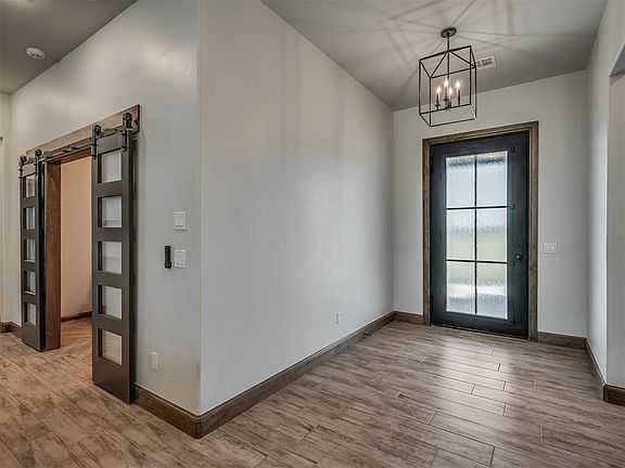 Welcome to your dream home on 2.5 acres, just 15 minutes from Norman! Every detail in this exquisite property has been carefully handpicked & customized to perfection. As you step inside, you'll immediately notice 17ft cathedral ceilings with floor to ceiling windows in the great room & the stunning full slab of Black Forest granite that graces the kitchen island - setting the tone for the elegance that flows throughout the entire home. The chef's kitchen, featuring high-end appliances, is a cook’s dream, ensuring that every meal prepared here is a masterpiece. The wood look tile throughout the home provides durability & a seamless design. Showcasing 3 fireplaces thoughtfully placed in the living room, master bedroom, and back porch you'll enjoy cozy evenings year-round. With the cathedral ceilings continuing onto the back porch you’ll be encompassed by the gorgeous wooded view. This home is made for comfort + convenience with a tankless hot water heater and a water softener, allowing you to never run out of hot water & silky-smooth water throughout the house. The custom roller shades add an extra layer of luxury + functionality, w/ motorized blinds in the master bedroom for your convenience. This home is also equipped with a whole-home generator hookup. You can't miss the ensuite with separate sinks, deep freestanding tub, and shower w/ two shower heads. Primary closet is an absolute dream with seasonal storage racks and built in drawers. Secondary bedrooms are on the opposite of the home maximizing privacy and shared bathroom w/separate sinks. The study/4th bedroom showcases a unique feature wall and flooring in the herringbone pattern + an attached full bath - designed to be dark and moody. Don't miss the 30x40 shop pad, a perfect canvas for creating your ideal workspace or additional storage needs. This is more than just a house; it's a masterpiece of one-of-a-kind design, waiting for you to call home. seller is agent/owner.