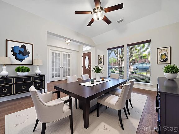 Open floorplanFrench drainFormal dining roomTwo primary suitesCustomized one-story homeQuartz countertopsCovered back patio