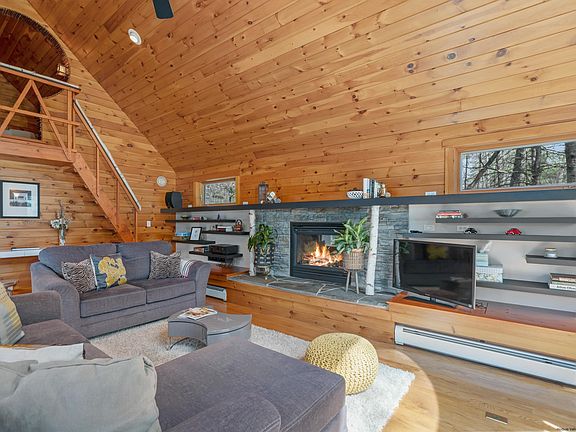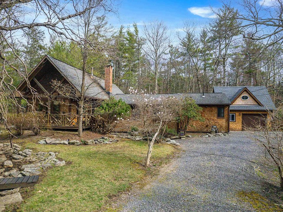 Hidden between the Catskills and Shawangunk mountains lies a stream that leads you through forsythias and magnolia trees to an ethereal storybook home in Olivebridge. Full of character and rustic charm, this home is uniquely built with a dramatic vaulted ceiling in the living room leading to a cozy loft that offers views of the outdoors. With abundant natural light bursting through the bright windows throughout the home, the interior elements of wood flooring, stone fireplaces, and birch tree accents mimic the natural landscape of the surrounding forest. Through the sliding glass doors and onto the large sundeck, the backyard transports you into a magical forest with a thick carpet of moss-covered rocks, evidence that if you respect nature you will reap the results. Spotlights scattered throughout the property on the tall trees and a stone fire-pit create an enchanting sanctuary from city life and bustling crowds. This home is a heaven for the outdoor enthusiast, and offers an intimate and immersive experience of nature as it is located just a few minutes from the Ashokan Reservoir with its many walking trails, and near the Esopus Creek which features world-class trout fishing. Offering a forever wild view, the property is across the street from beautiful rock ledges and nearby to the trendy Tetta's Market in Olivebridge. The location of the property offers the full Catskills experience, whether it be tubing down the Esopus in the summer heat, hiking the Catskill 3500 high peaks, touring the many craft breweries or skiing Belleayre Mountain in the winter. While the location offers the peace and quiet of a cabin in the woods, it is still centrally located just 20 minutes from the Village of Woodstock, 20 minutes to Kerhonkson and 25 minutes to Uptown Kingston. You can feel the magic of this space from the moment you step foot on the property. Please join us at the Open House this Saturday.