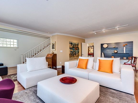 North-facing front yardMature gardensCustom maple built-in cabinetryBrazilian rosewood floorsGas fireplaceUpdated appliancesOutdoor dining deck