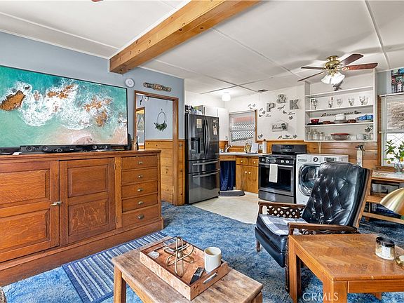 SELLER PAID RATE BUYDOWN AVAILABLE WITH QUALIFYING OFFER. Welcome to this stunning, well cared for 1 bed/1 bath Crestline home with bonus Loft! Nestled in the heart of the community, this amazing property offers the ideal combination of convenience and comfort. Step inside to the cozy living room with an energy efficient gas burning stove and large front windows that frame stunning views. The kitchen is updated with new energy efficient appliances, tile countertops and a washer/dryer combo unit for added convenience. The bedroom is spacious with plenty of wall storage and a closet. The loft area is huge and could easily become a second bedroom or accommodates extra storage. Outdoor living is also a big part of this picture! You'll love to spend time outside in the large fenced in yard with a storage shed, a brand new retaining wall, and a two car garage with workshop loft. The house also features brand new energy efficient windows throughout ensuring lower energy costs. Property is fully fenced, in town, minutes from HWY 138 and one of the first streets to be plowed when it snows. What more could you want from this amazing property?