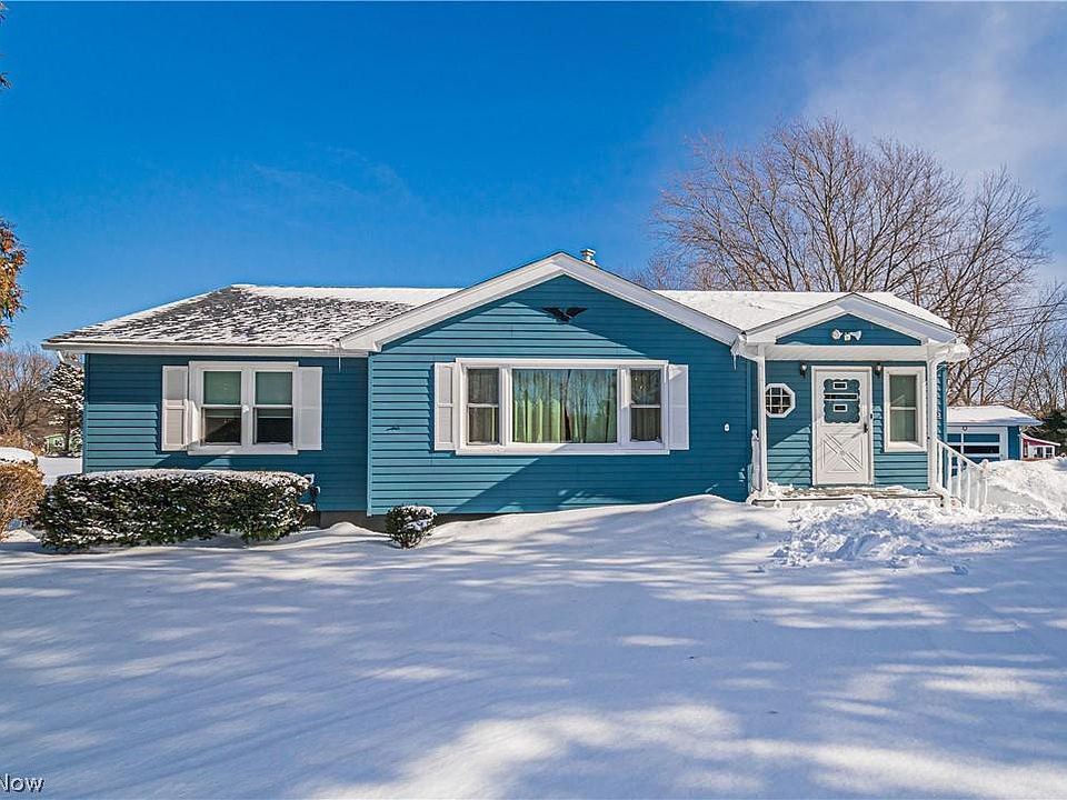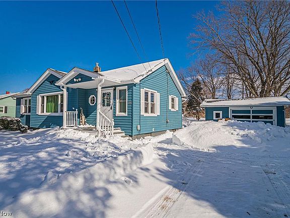 Desired ranch in North Perry with 1,140 sq. ft., 3 bedrooms, 2 full baths, a partially finished basement, and a 1-car detached garage that sits on a .75-acre lot. Inviting front porch welcomes you into the dining and living room areas with hardwood floors. Kitchen comes with all appliances and could use a tune up. 3 bedrooms and a full bath complete the first floor. Lower level is unfinished with a full bath, laundry, recreation and workshop areas. Exterior deck leads you to the backyard acreage. Detached one car garage with no electric. Roof 2021, Water Stack Inside the Home 2019 Replacement Windows 2016. Home is located near the Lake Metroparks with trails, pavilions, and beach access. North Perry Residents enjoy free water, basic internet, garbage, recycling and water! Seller to provide a one-year home warranty and provides Immediate Possession! Don't miss your opportunity to own this gem and buy today!