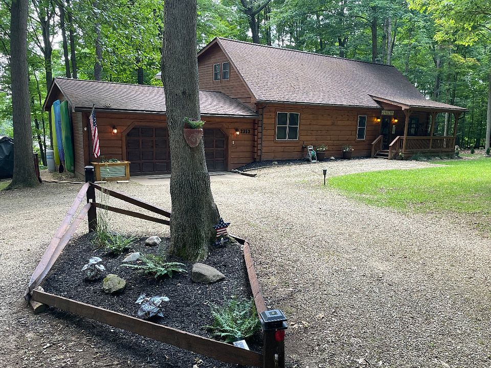 Charming Log Cabin for Rent with 2 bedrooms 2 full baths, wood burning stove, screened back deck, 2 car garage sits on 2 wooded lots . New hardwood laminate flooring in living, dining area. Beautiful setting ar Apple Valley Lake.