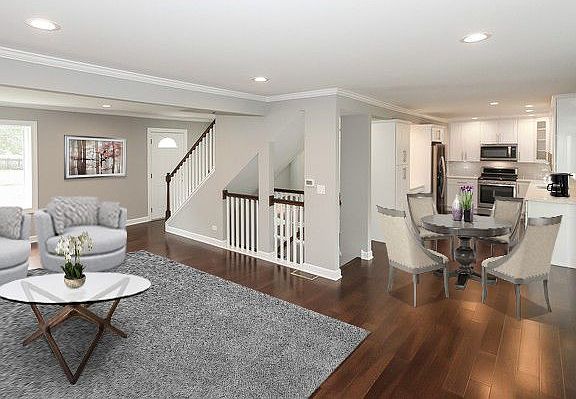 Amazing home with tons of upgrades and special features such as a beautifully remodeled eat-in Kitchen with all NEW: white 42' cabinet doors, stainless steel appliances, quartz counter tops and tiled backsplash. Spacious 4 Bedrooms, Master Suite with fabulous remodeled full Bath. Fantastic large open floor plan. Stunning new wood laminate floors, metal staircase, full finished basement with Rec Room, Game Area and Bonus Room. Other great features include: NEW windows, furnace, A/C, high efficiency water heater, carpeting, trim, doors, fixtures, all remodeled Baths. Freshly painted, brick paver Patio, fenced yard, 2 1/2 car garage, and so much more! Your clients will not be disappointed! Home looks like new construction, don't miss out!!!