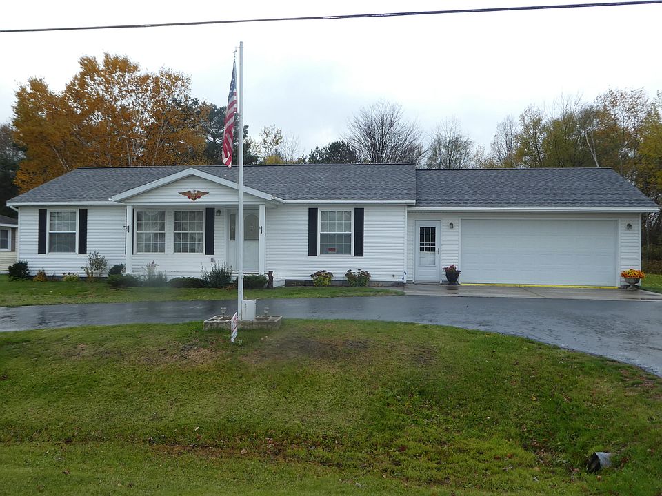 Quality 3 bedroom home with two baths; lovely, Oak stained cabinets in kitchen and plenty of counter space too! The split floor plan is designed for comfortable and pleasant living. Living room offers cathedral ceiling for light and airy feeling. Master bedroom with adjoining bath and plenty of closets. The dining room offers a quality slider to spacious deck and viewing of the over sized back yard where deer and other wildlife will be viewed and enjoyed. The two car attached and finished garage is spacious and roomy enough for your favorite work projects beside your favorite toys. Two sheds, one with electricity for a great workshop and extra storage. Very conveniently located just outside the city with city water and sewer. Truly a must see!
