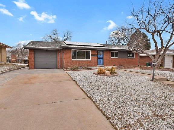 This lovely ranch style home will appeal to clean energy lovers-it boasts a 9.2kW solar system with a 13.5kWh Powerwall 3 battery, & has an EV charger. Take control of your energy usage with the SPAN smart panel, which provides detailed energy consumption & management capability from an app. This configuration, also known as a “micro-grid”, means during a power outage it operates for many hours, possibly even days, on its solar and battery system. In the sunniest months of May through October, this home will possibly have no electricity bill & may even sell power back to the utility. This nearly all electric home features a brand new HVAC system, a dual-fuel, cold climate heat pump, which will perform well even on extremely cold days. The solar, battery, smart panel, and HVAC system upgrades cost over $70,000, were all installed in 2024, and are paid off. There is no solar lease or payments to take over, making this a huge value. This home offers a comfortable design. Walk through the entrance into the cozy living room w/an attached formal dining room. The kitchen and family room are joined together to offer a great space to entertain guests and cook! The kitchen has mostly new appliances - a new Bosch dishwasher, a GE range and air fry convection oven, a Samsung Bespoke fridge. The family room has great personality w/terrazzo tile & new wall paneling. Off of the family room are the sliding glass doors to the shaded patio & large backyard which offers a fire pit area and green space. The main level features 3 spacious bedrooms-a primary, a guest room & a possible office. The main floor bathroom has a new state of the art shower system with multiple heads and an LED panel that displays the water temperature. The basement offers a 3rd living space, 4th bedroom, and 2nd bathroom. Harvey Park is just blocks away with a beautiful lake and green space with trails and a dog park. Harvey Park Recreation Center has great amenities that are open to the public. Enjoy!
